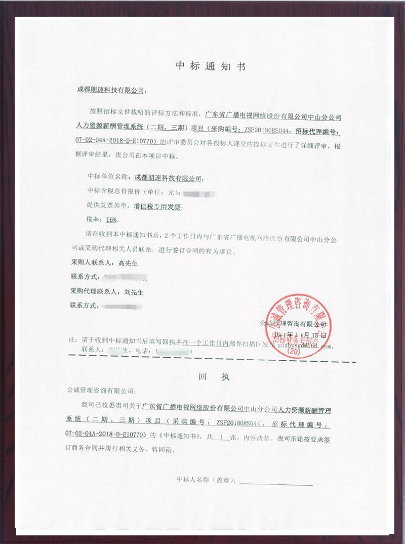 祝賀:朗速軟件中標廣東省廣播電視網(wǎng)絡中山分公司《人力資源薪酬管理系統(tǒng)》,廣東省廣播電視網(wǎng)絡股份有限公司(簡稱:廣東廣電網(wǎng)絡)是經(jīng)廣東省委、省政府批準,由20家發(fā)起人共同發(fā)起組建的省屬大型國有文化企業(yè),是以廣播電視節(jié)目傳輸為主業(yè)的大型現(xiàn)代化有線廣電網(wǎng)絡運營商。公司目前下轄珠江數(shù)碼集團有限公司、廣東有線廣播電視網(wǎng)絡股份有限公司(直屬公司)、19個地市分公司和68個縣級分公司,現(xiàn)有在職人員9100多人(含派 遣制人員)。用戶規(guī)模達1300多萬戶,總資產(chǎn)規(guī)模達150多億元。用戶規(guī)模、資產(chǎn)總額均位居全國同行業(yè)前茅。公司下一步還將全面推進全省廣電網(wǎng)絡資源整合,實現(xiàn)"全省一張網(wǎng)"的戰(zhàn)略目標,成為資產(chǎn)和經(jīng)營收入超過200億元,有線電視用戶達到1900萬戶,在全國具有強大競爭力和影響力的知名骨干文化企業(yè)。2012年5月18日,入選第四屆中國“文化企業(yè)30強”